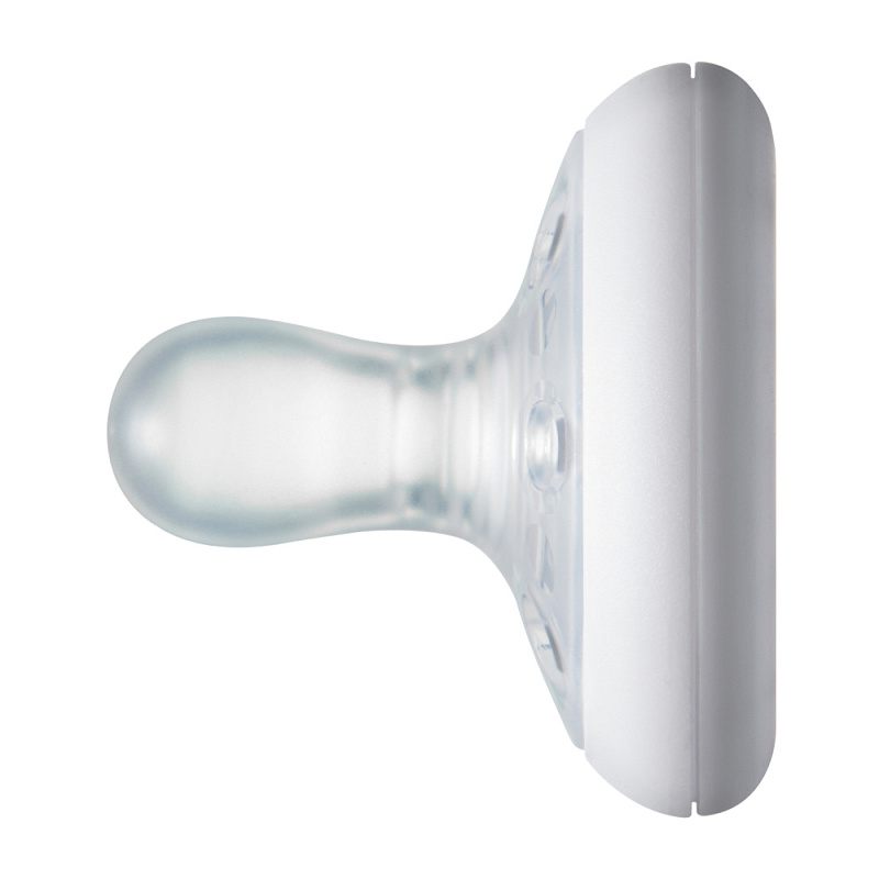 Пустышка удобно располагается между подбородком и носом ребенка, а отверстия с каждой стороны обеспечивают дополнительный приток воздуха и предотвращают раздражение нежной кожи малыша.