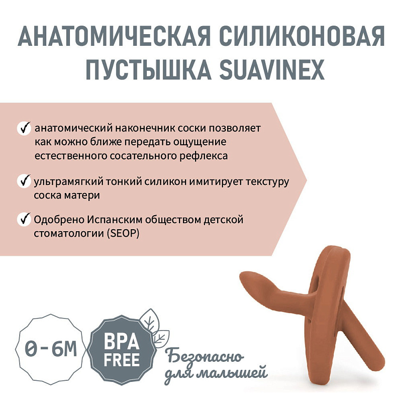 Соска-Пустышка Suavinex Anatomical Pro 0–6 мес 308082 BRICK RED