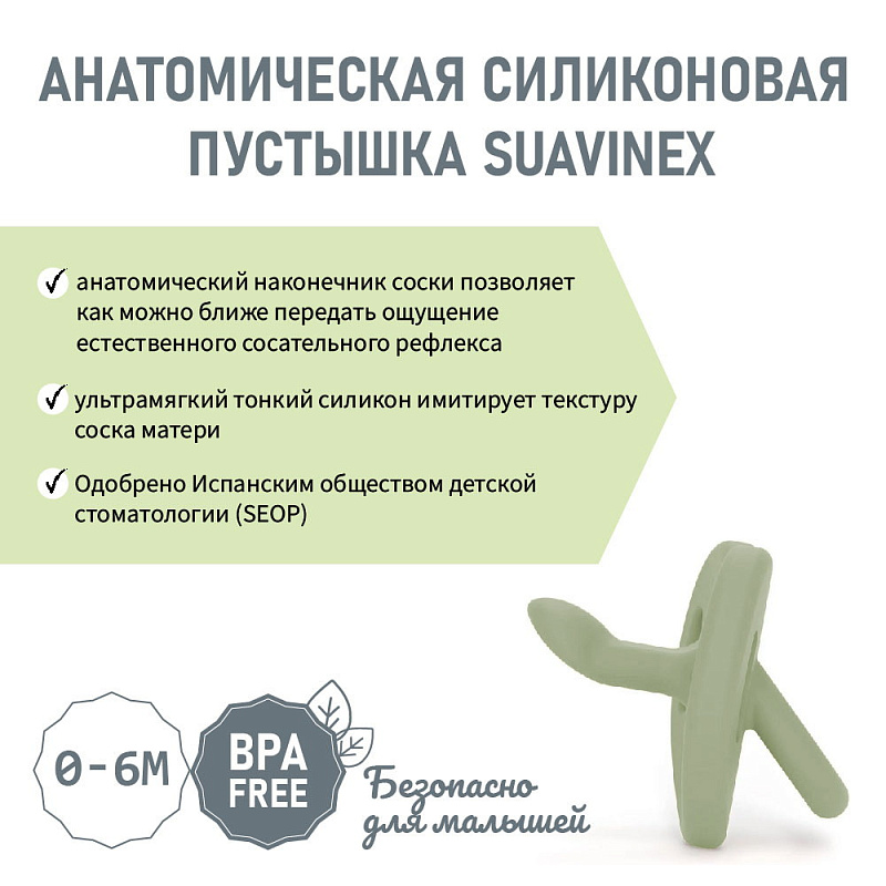 Соска-Пустышка Suavinex Anatomical Pro 0–6 мес 308084 GREEN