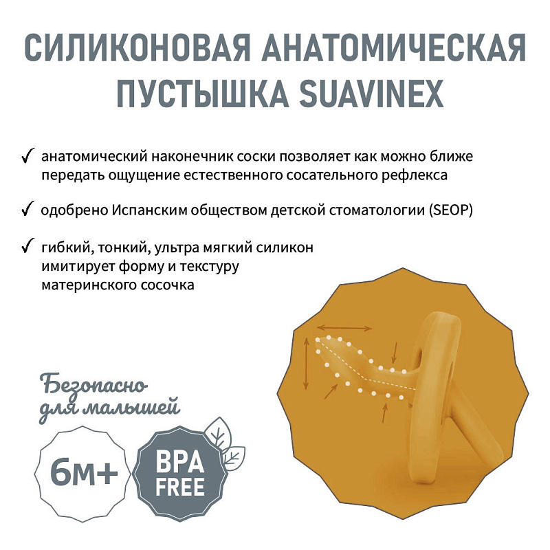 Соска-Пустышка Suavinex Anatomical Pro 6–18 мес 308077 MUSTARD