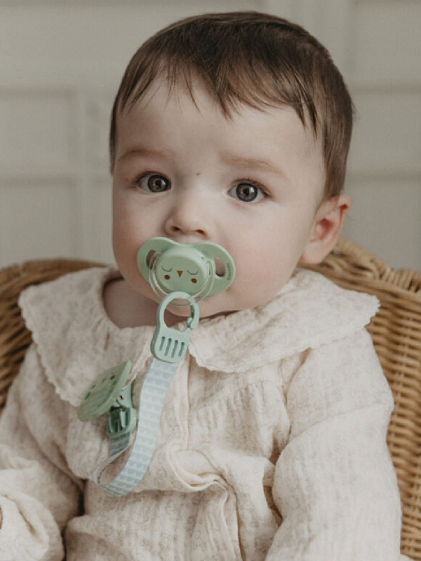Пустышка Suavinex с силиконовой соской SX Pro, которая анатомически правильно располагается во рту ребенка, не препятствуя естественному развитию ротовой полости и прикуса.