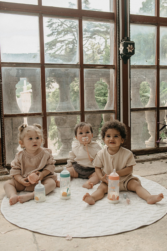 - Ультрамягкий тонкий силикон с фактурным покрытием имитирует ощущение и текстуру материнского соска, обеспечивает идеальную гибкость пустышки