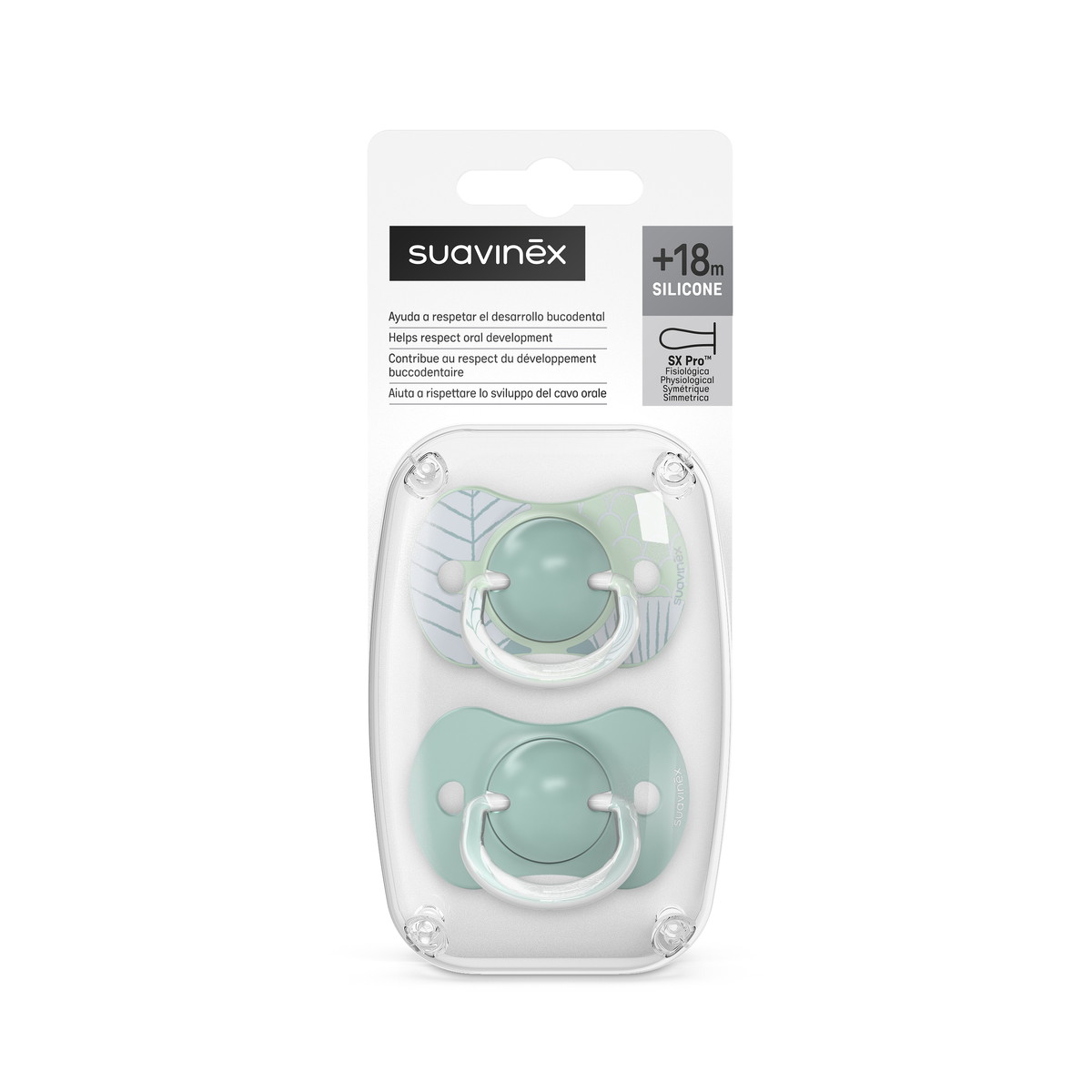 Пустышка Suavinex с физиологической силиконовой соской SX Pro, которая анатомически правильно располагается во рту ребенка, не препятствуя естественному развитию ротовой полости и прикуса.