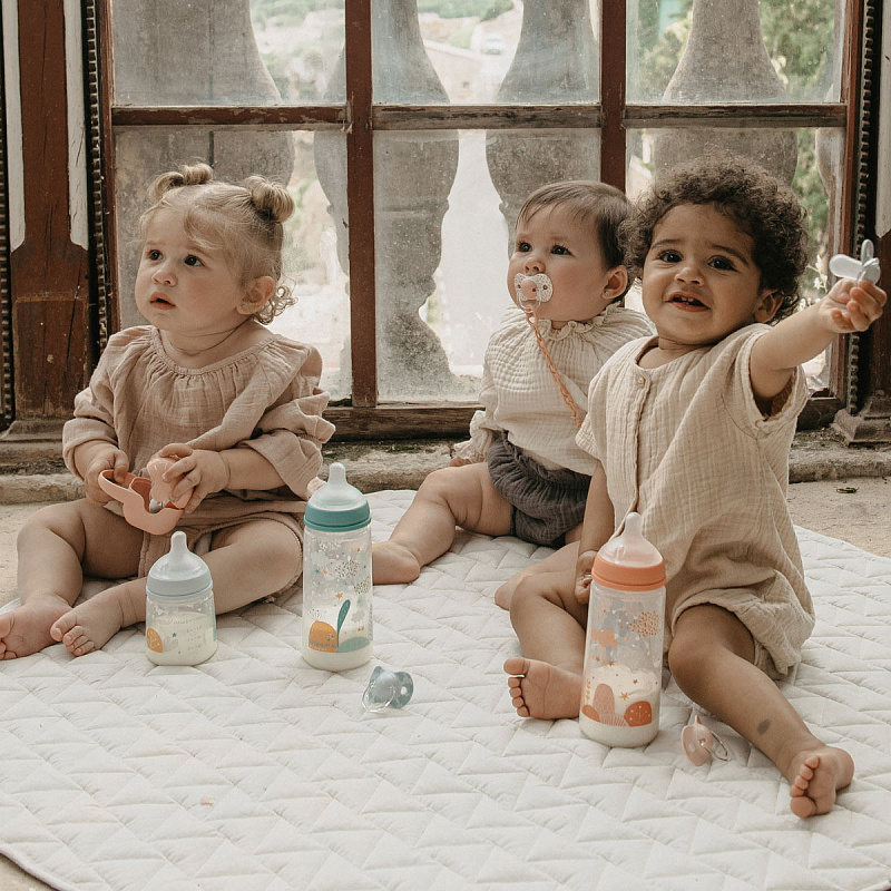 - Ультрамягкий тонкий силикон с фактурным покрытием имитирует ощущение и текстуру материнского соска, обеспечивает идеальную гибкость пустышки