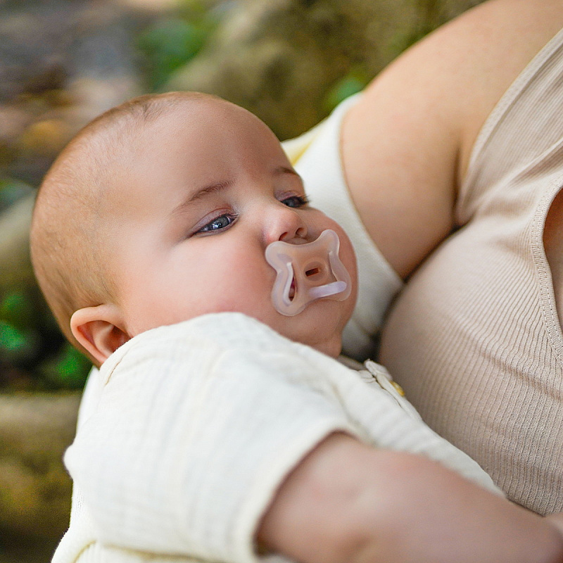 - Соска и корпус пустышки выполнены из гибкого ультрамягкого силикона и по форме и текстуре имитируют текстуру материнского соска