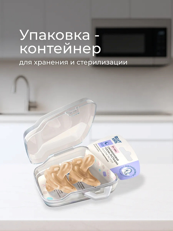 Соска-пустышка цельносиликоновая Roxy-Kids в стерилизаторе, 2 шт, 0-6 мес. RSS-005-2SC карамельная1 оценкаХарактеристики