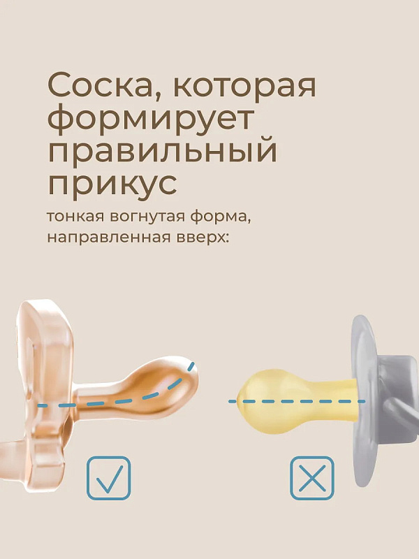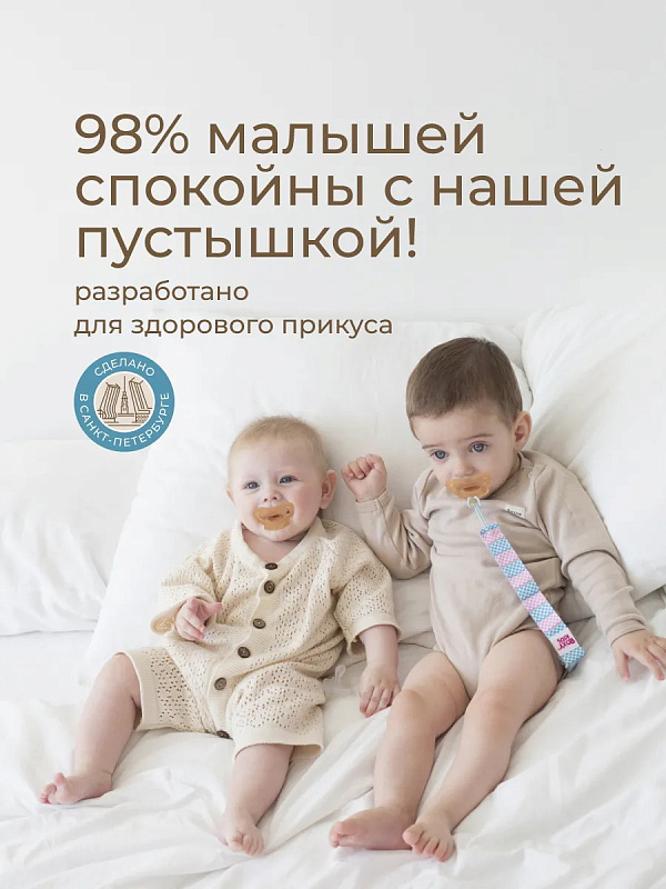 Цельнолитая силиконовая пустышка воплощает в себе современные разработки и технологии для обеспечения максимальной безопасности и гигиены. Отсутствие швов и стыков препятствует размножению бактерий. Ортодонтическая форма способствует правильному формированию прикуса. И самое главное — пустышка поставляется в удобном стерилизаторе! Всего 3 минуты — и пустышка снова готова к использованию.