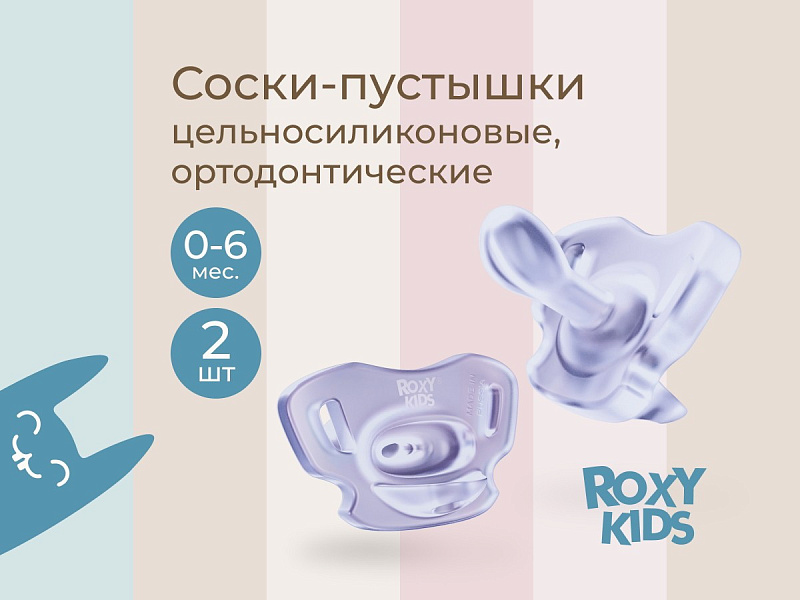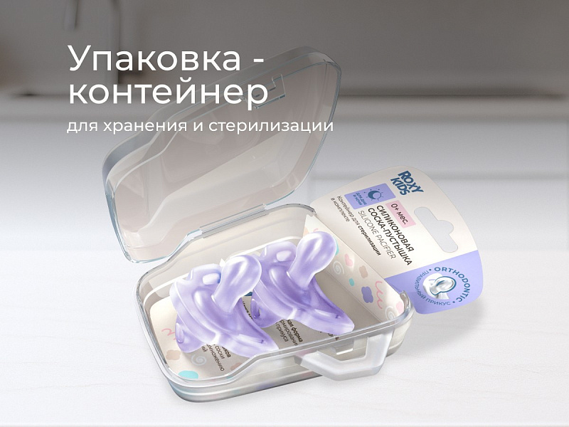 Соска-пустышка цельносиликоновая Roxy-Kids в стерилизаторе, 2 шт, 0-6 мес. RSS-005-2SL лавандовая1 оценкаХарактеристики