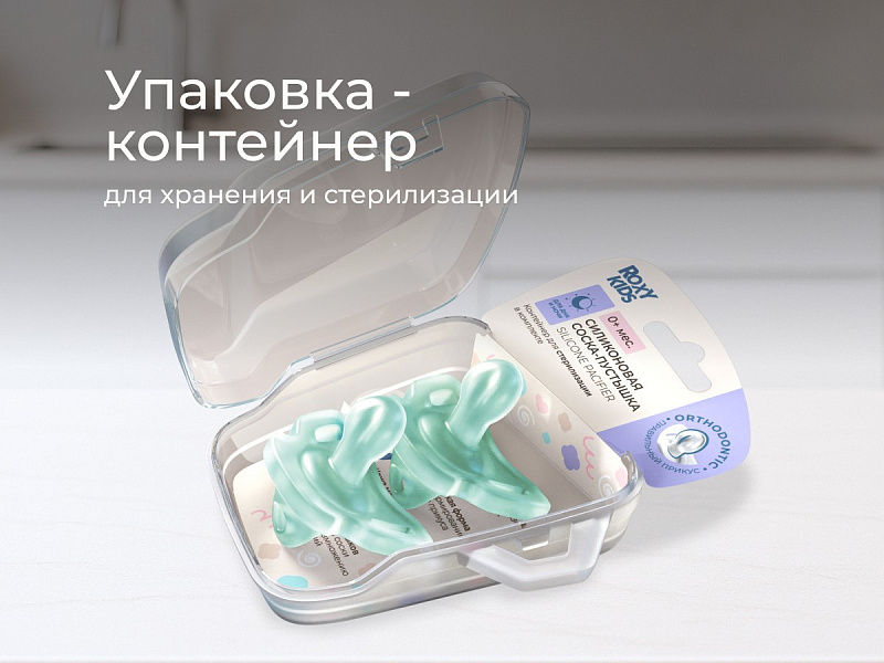 Соска-пустышка цельносиликоновая Roxy-Kids в стерилизаторе, 2 шт, 0-6 мес. RSS-005-2SМ мятная1 оценкаХарактеристики