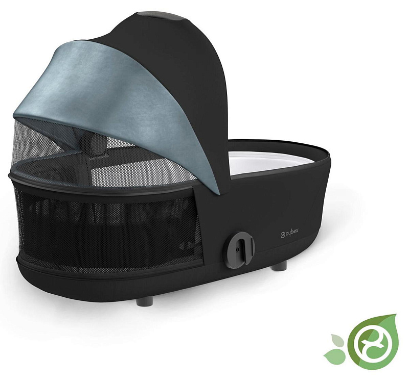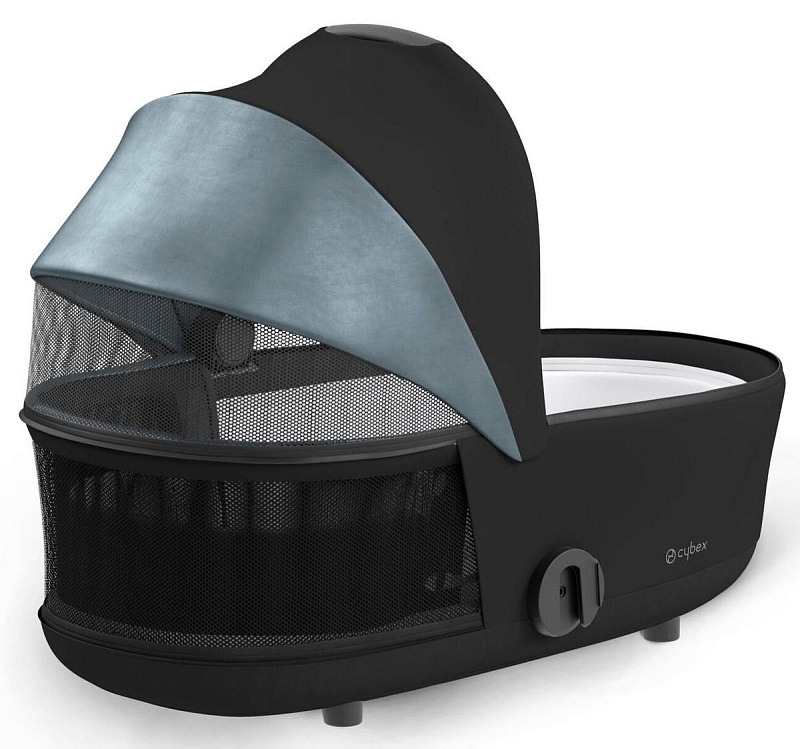 Люлька оснащена регулируемым солнцезащитным капором, который обеспечивает защиту от солнца на уровне UPF50+, и у которого имеется выдвижной козырёк, обеспечивающий дополнительную тень. Регулируемый капор с большим козырьком защищает ребёнка от солнца и ветра во время прогулки. У люльки имеется удобная ручка для переноса. Накидка для люльки надежно защищает малыша в ветреную и снежную погоду.