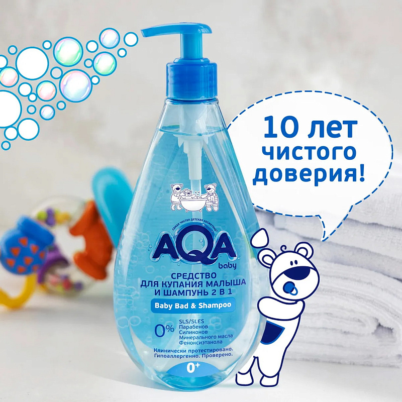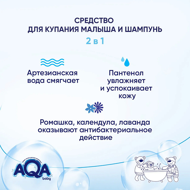 Средство AQA baby для купания и шампунь 2 в 1 400 мл