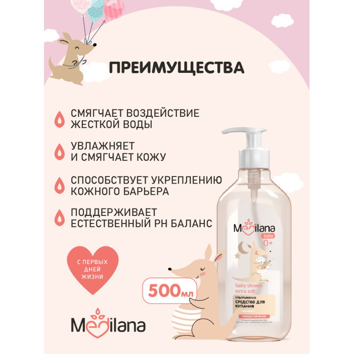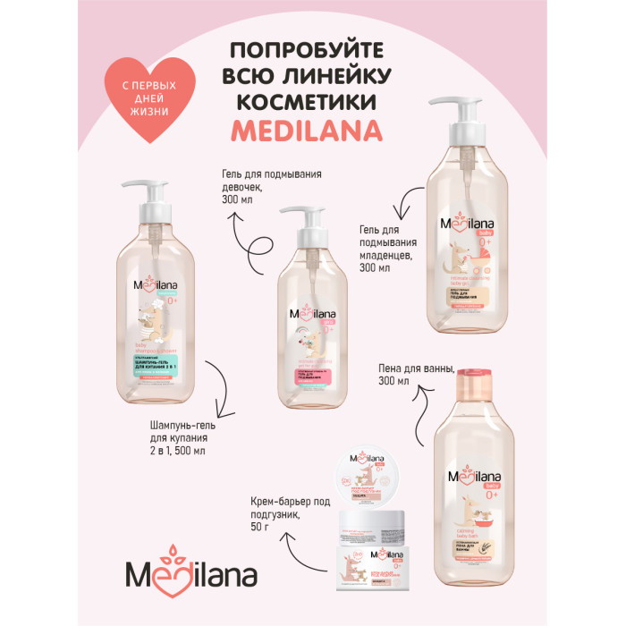 Средство для купания Medilana baby бережно очищает кожу, идеально подходит для ежедневных водных процедур. Смягчает воздействие жесткой воды на кожу малыша и минимизирует проявление сухости, шелушений, поддерживает естественный рН-баланс. Средство способствует укреплению кожного барьера, препятствующего потере влаги.