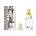 Стеклянная бутылочка Bibs Boheme для кормления с латексной соской, медленный поток, 120 мл 50192216 Ivory