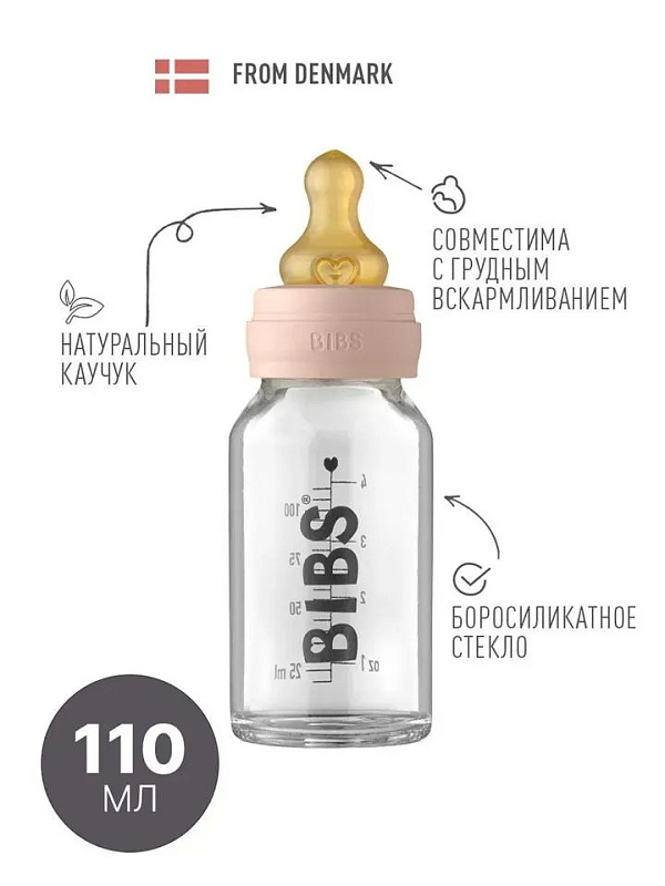 Стеклянная бутылочка Bibs Complete Set, 110 мл 5013244 Blush