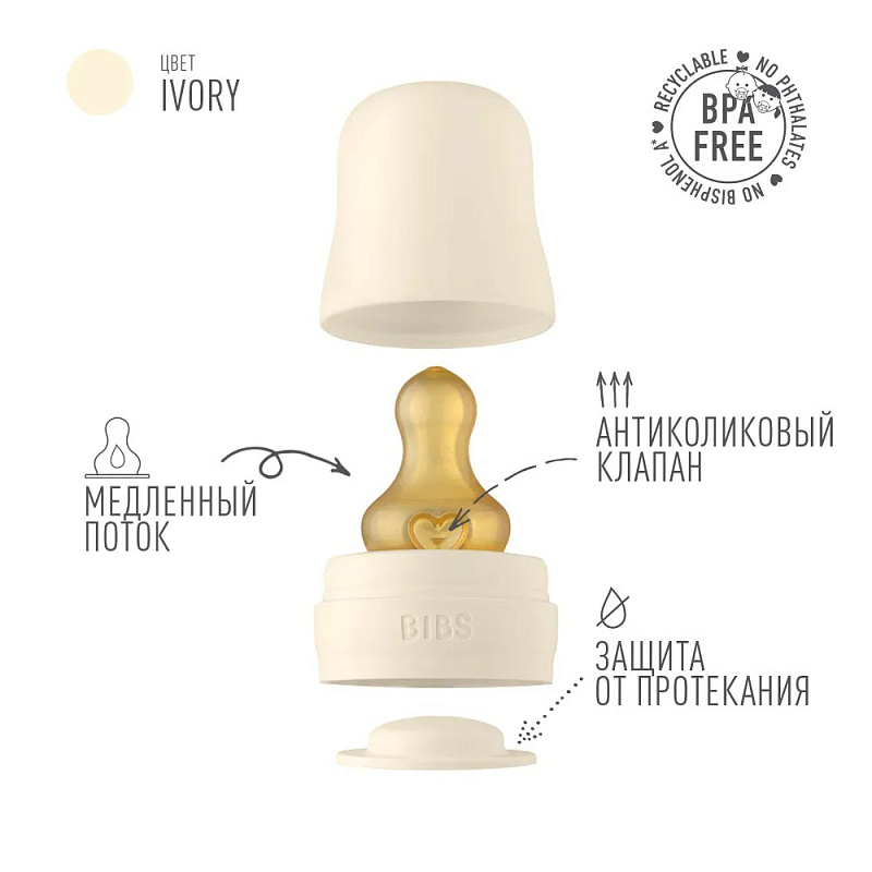 Стеклянная бутылочка Bibs Complete Set, 225 мл 5014216 Ivory