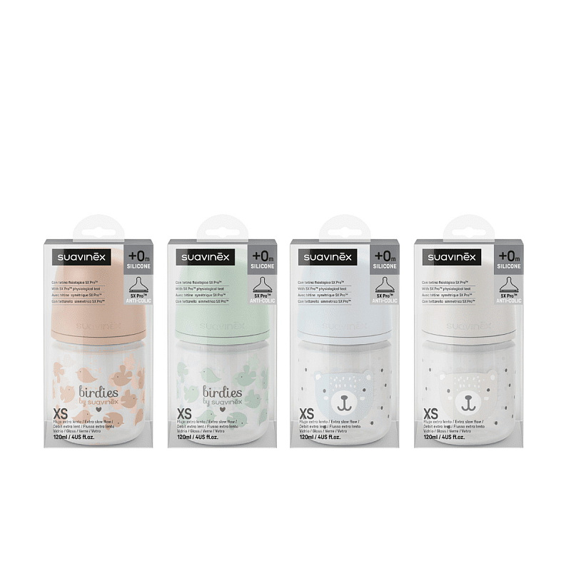 Стеклянная бутылочка для кормления Suavinex Birdies 120 мл, 0+ мес 309142 PK
