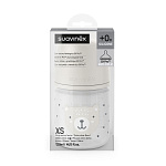Силиконовая соска SX Pro на бутылочках Suavinex имеет физиологическую форму — она плоская и симметричная, что наиболее часто рекомендуется детскими стоматологами.