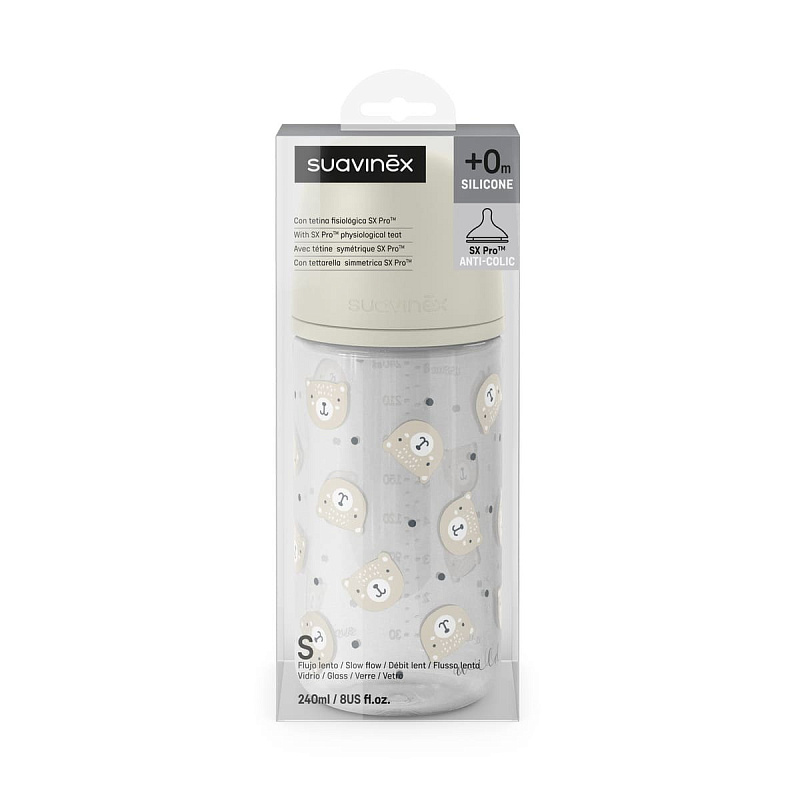 Стеклянная бутылочка для кормления Suavinex Wild 240 мл, 0 мес+ 309148 BG