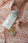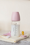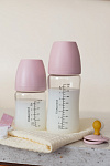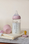 Бутылочка имеет широкое горлышко диаметром 5 см, что значительно облегчает мытье как в посудомоечной машине, так и вручную. Дизайн продуман до мелочей, чтобы малышу и маме было удобно держать её в руках.