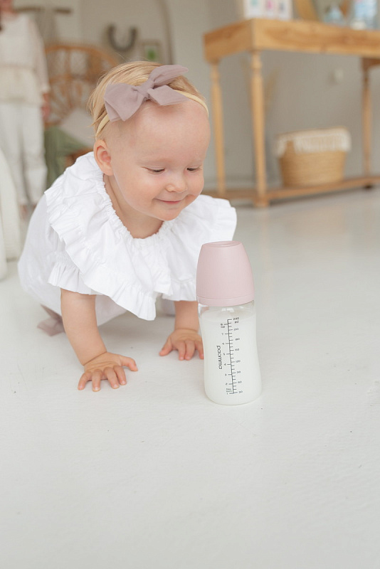 Бутылочка имеет широкое горлышко диаметром 5 см, что значительно облегчает мытье как в посудомоечной машине, так и вручную. Дизайн продуман до мелочей, чтобы малышу и маме было удобно держать её в руках.