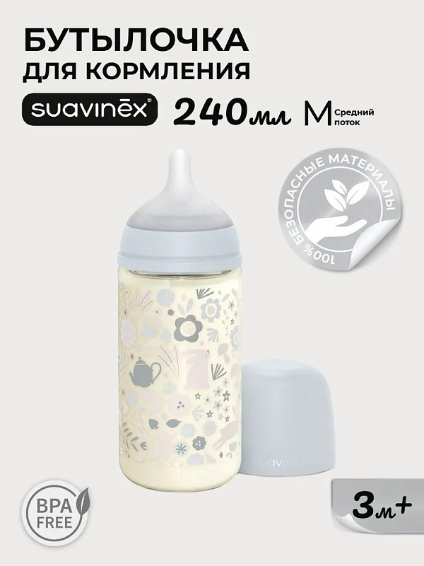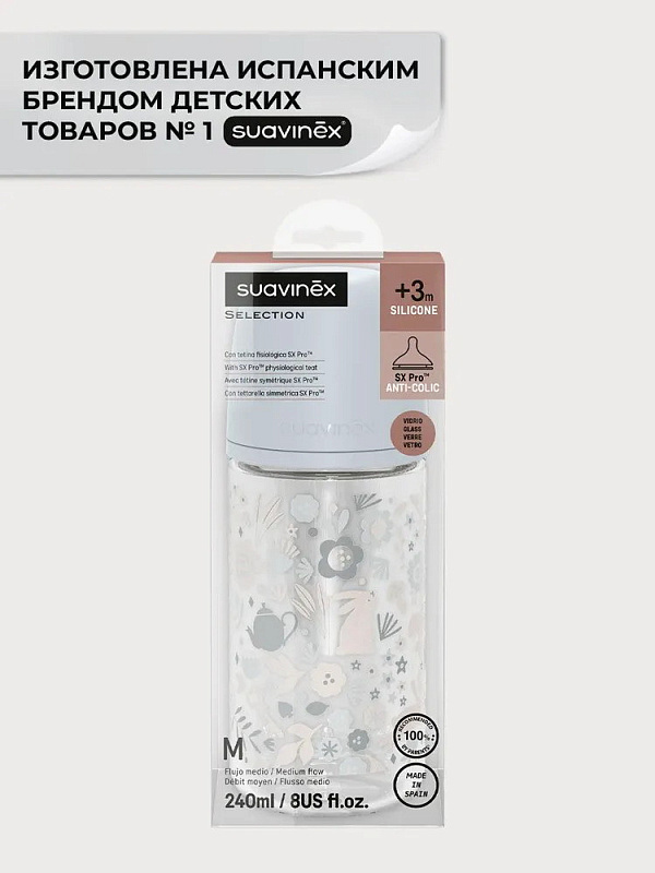 Стеклянная бутылочка Suavinex FM S Wond для детского питания 240 мл, 3+ 308778 LIBER BLНет оценокХарактеристики