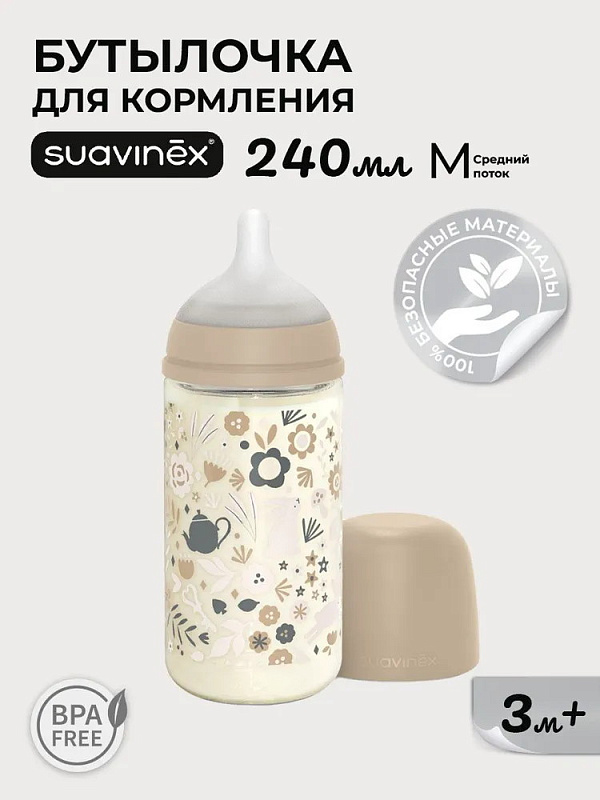 Стеклянная бутылочка Suavinex FM S Wond для детского питания 240 мл, 3+ 308789 LIBER BGНет оценокХарактеристики