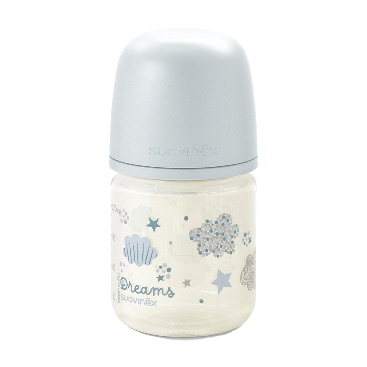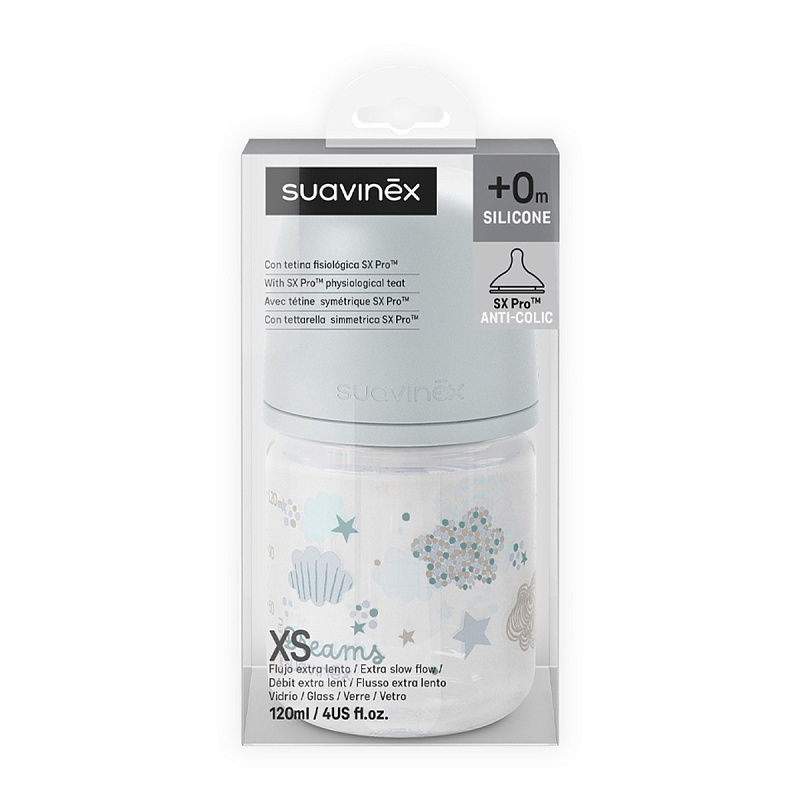 Стеклянная бутылочка Suavinex FXS S 120 мл, с соской из сверхмягкого силикона 308238 BLUE
