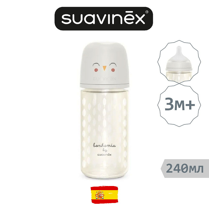 Стеклянная бутылочка Suavinex Physiological Pro для детского питания 240 мл, 3+ 307830 BGНет оценокХарактеристики