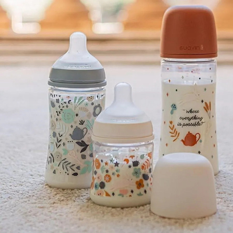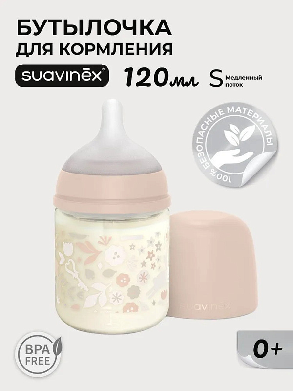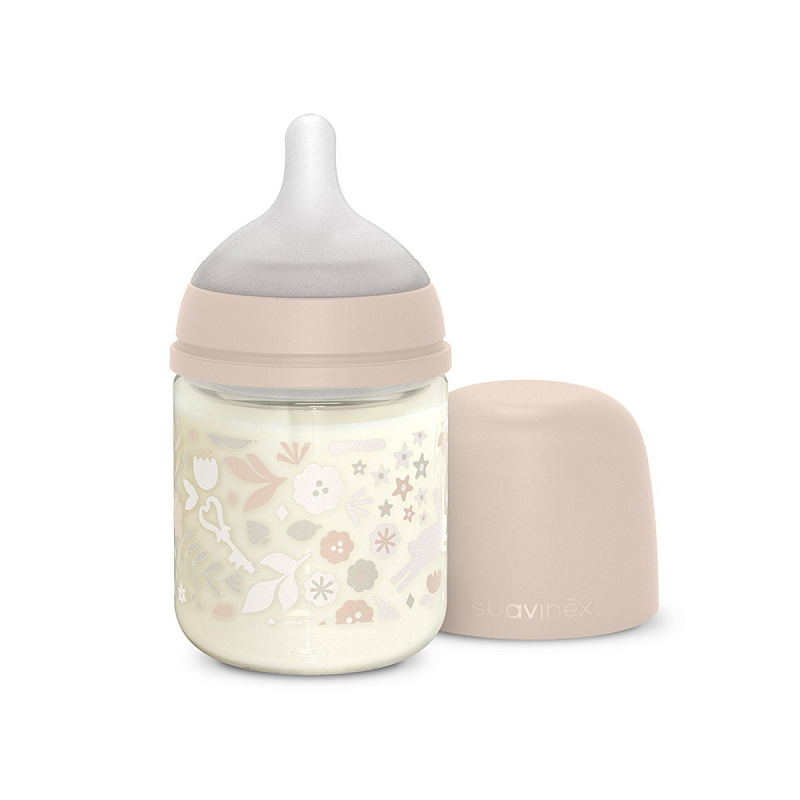 Антиколиковая стеклянная бутылочка SUAVINEX с силиконовой физиологической соской SX Pro делает процесс кормления максимально естественным и помогает предотвратить возникновения коликов.