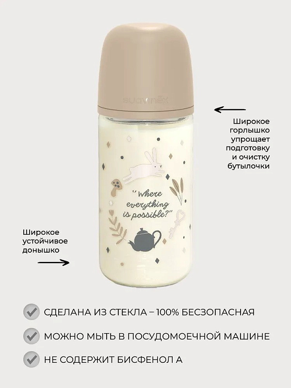Стеклянная бутылочка Suavinex Wonderlend для детского питания 240 мл 308796 TEXT BGНет оценокХарактеристики