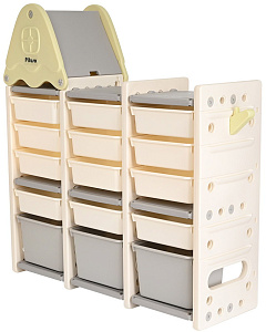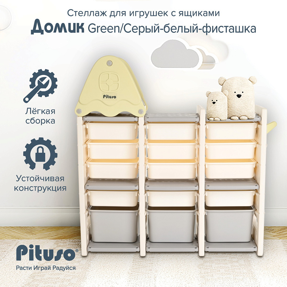 Стеллаж для игрушек Pituso Домик с ящиками Green/Серый-белый-фисташка