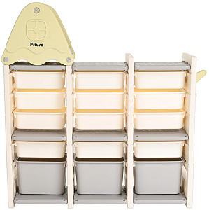 Стеллаж для игрушек с ящиками и полками выполнен из качественного пластика. Данный материал экологичен и прост в чистке. Небольшой вес стеллажа и его устойчивая конструкция обеспечивают ребёнку безопасность от ушибов.