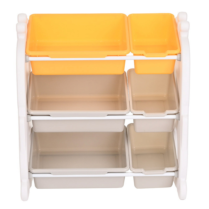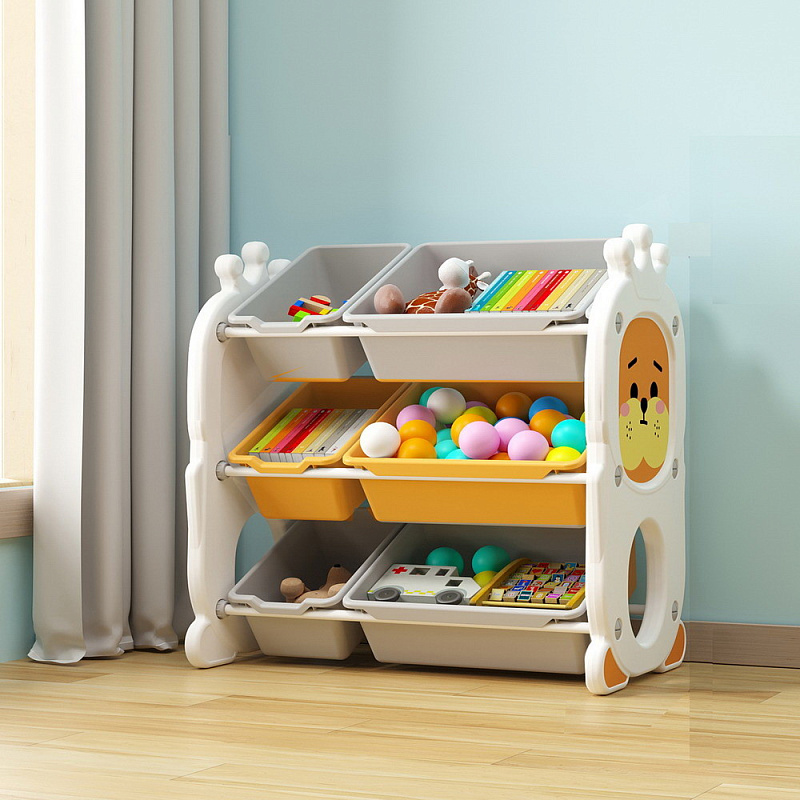 - Стеллаж для игрушек с ящиками и полками выполнен из качественного пластика. Данный материал экологичен и прост в чистке. Небольшой вес стеллажа и его устойчивая конструкция обеспечивают ребёнку безопасность от ушибов.