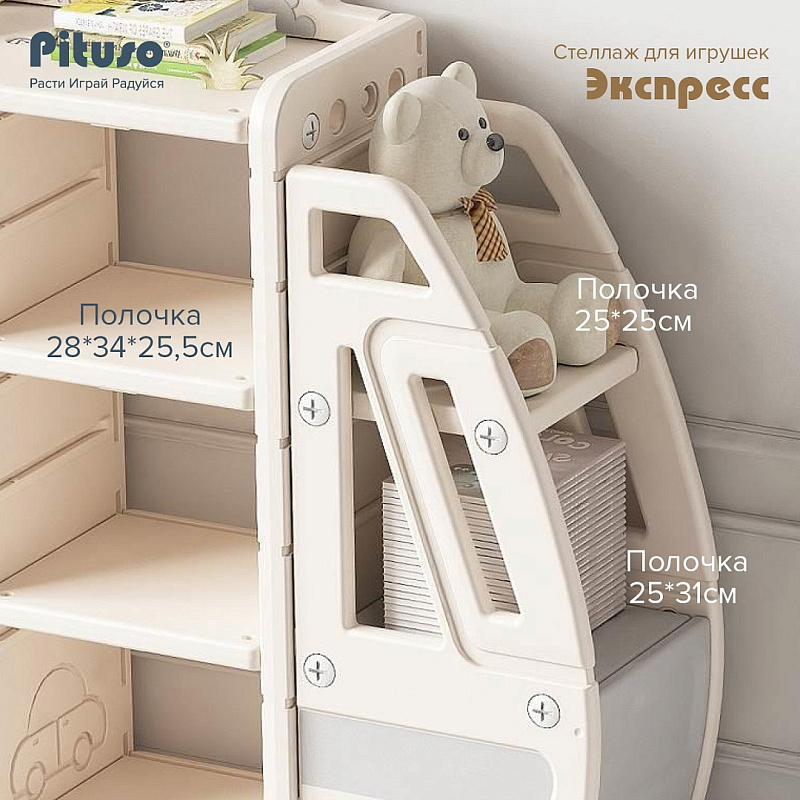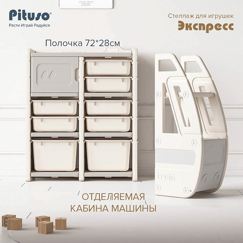 Стеллаж для игрушек Pituso с ящиками Экспресс Grey/Серый-бежевый