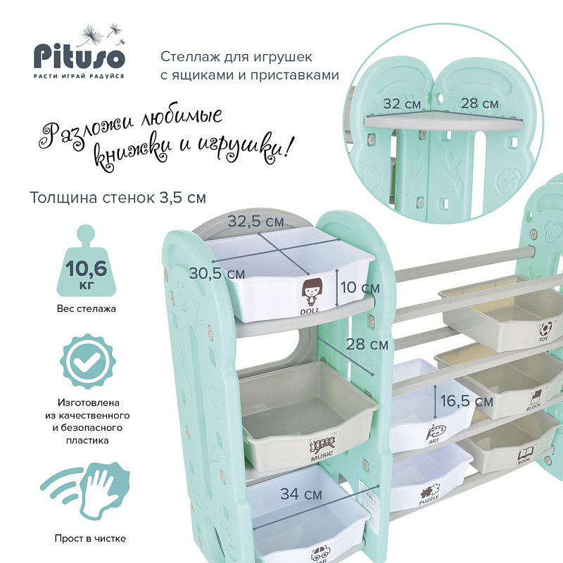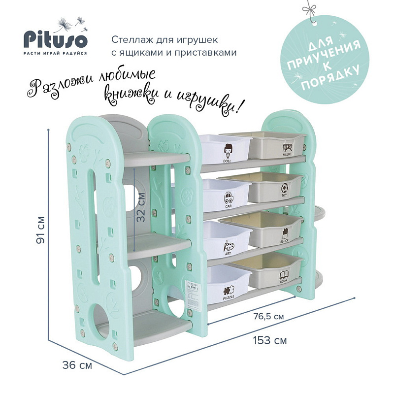 Стеллаж для игрушек Pituso с ящиками и приставками L-SNJ06