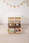Эта модель стеллажа идеально подойдет для хранения игрушек и других детских вещей, благодаря высокому качеству материалов и точной конструкции. Главное преимущество этого стеллажа - это безопасность материалов, из которых он изготовлен.