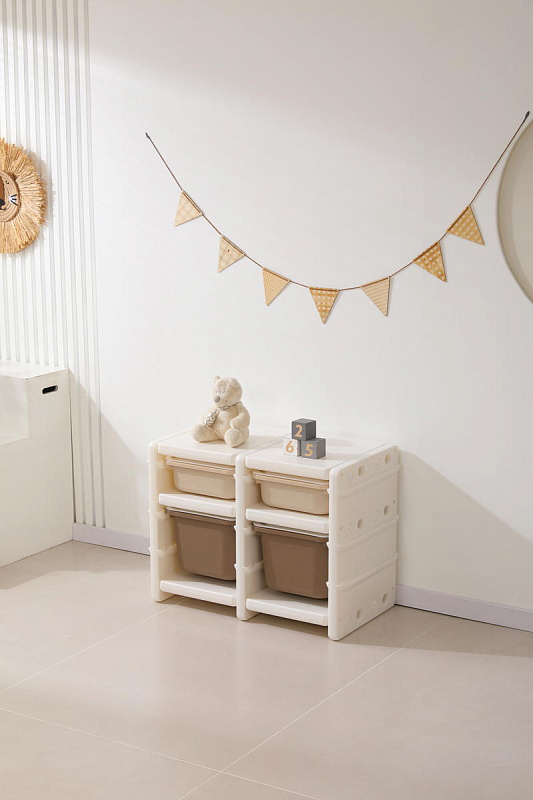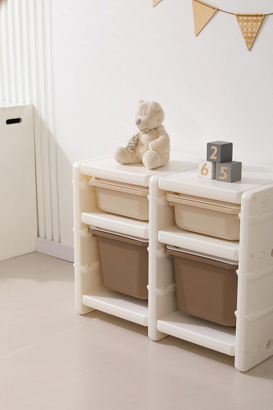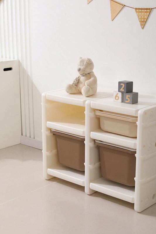 Наш пластиковый стеллаж для игрушек имеет светлую цветовую гамму, что позволяет ему идеально вписаться в любой интерьер и прекрасно подойти для детских комнат мальчиков и девочек. Этот стеллаж - прекрасное решение для хранения как мягких игрушек, так и более тяжелых предметов.