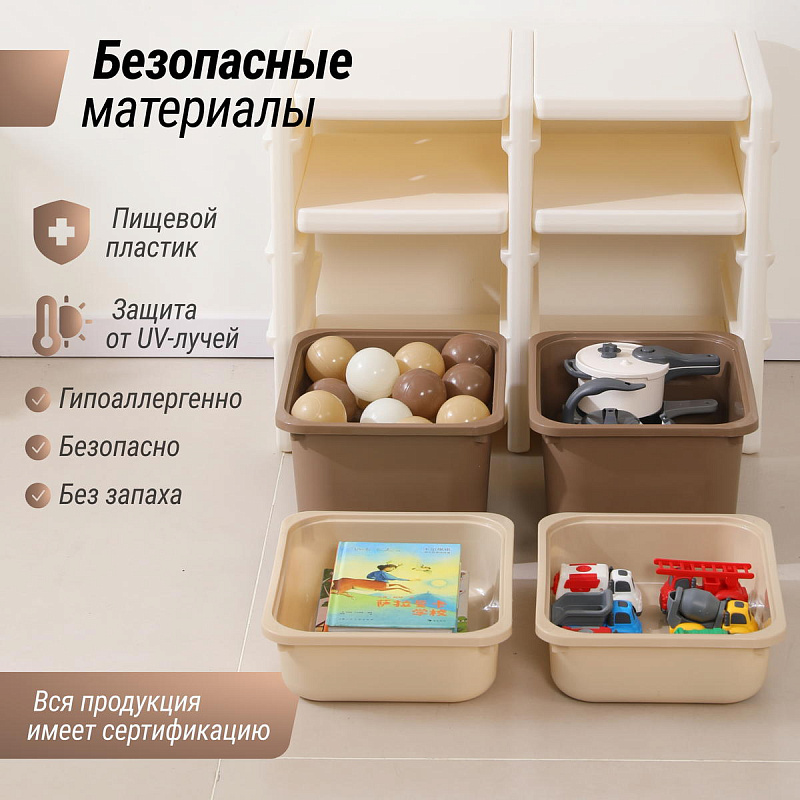 Одним из главных требований для детских игрушек и аксессуаров является безопасность материалов. Мы обеспечиваем нашим потребителям безопасность стеллажа, чтобы вы могли хранить игрушки и другие вещи с чувством спокойствия, не волнуясь о шпильках и острых краях, которые могут нанести вред вашим детям.