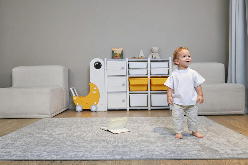 Стеллаж для игрушек UNIX Kids Moon 13 от немецкого бренда – это не просто мебель, а функциональное и стильное решение для организации пространства детской комнаты. Модель, представляющая собой конструкцию из трех полок и десяти вместительных ящиков, выполнена из высококачественного пищевого пластика, что гарантирует безопасность малыша. Габариты стеллажа в собранном виде составляют 94 см в высоту, 179 см в ширину и 31 см в глубину. Вес конструкции – 21 кг, что обеспечивает достаточную устойчивость, но при этом позволяет без особых усилий перемещать стеллаж при необходимости. Производитель предоставляет гарантию 24 месяца, подтверждая высокое качество материала и сборки.