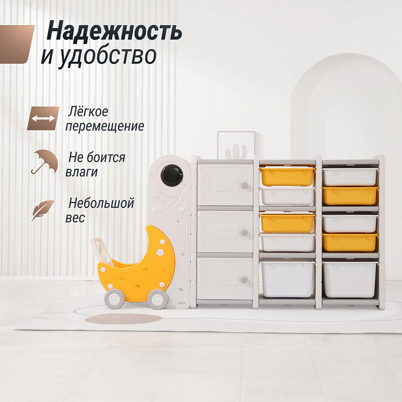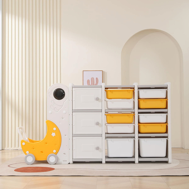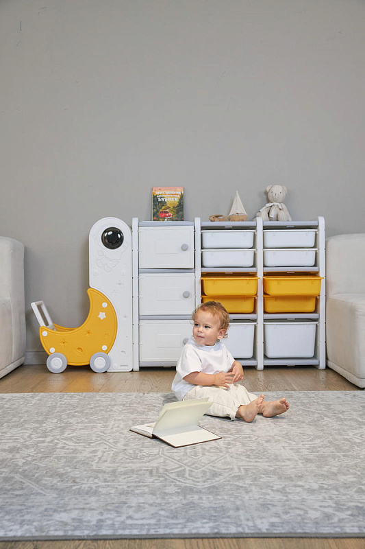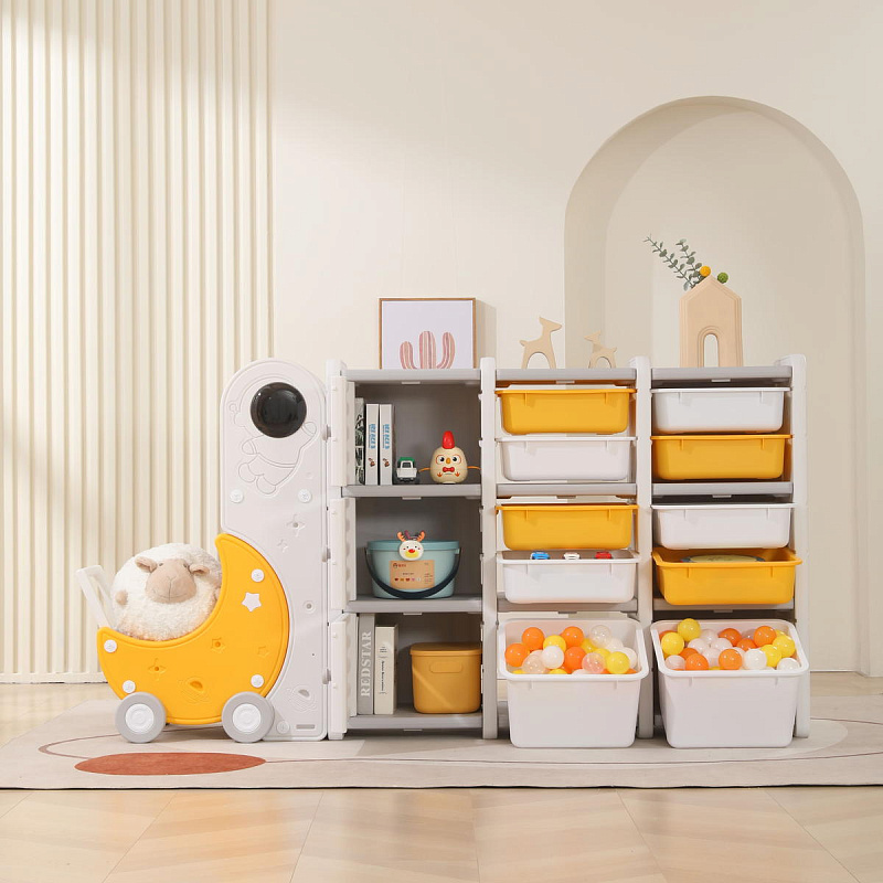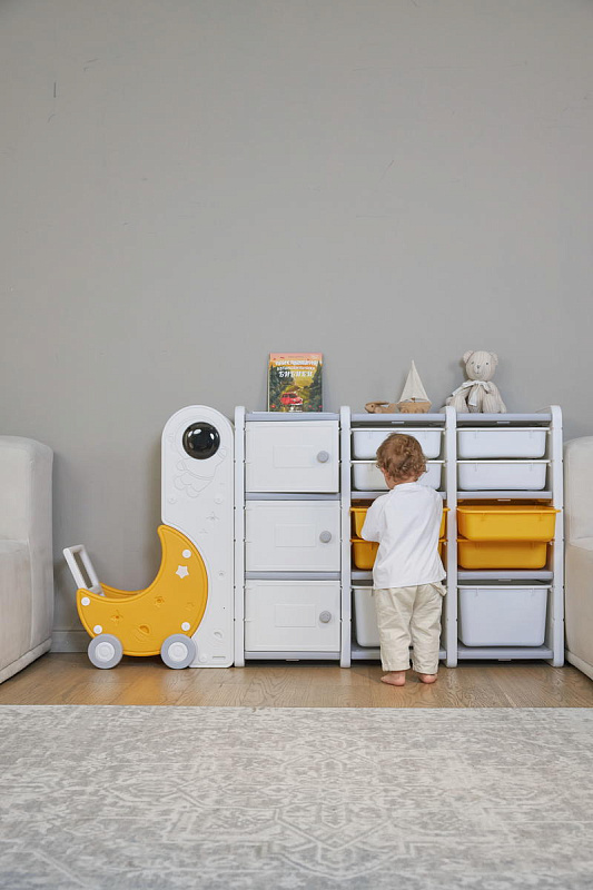 Стеллаж для игрушек UNIX Kids Moon 13 (3 полки + 10 ящиков) желтый/белый