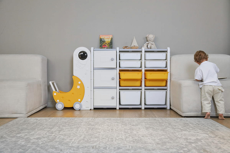 Конструкция стеллажа UNIX Kids Moon 13 продумана до мелочей. Три полки и десять вместительных ящиков позволяют организовать хранение игрушек, канцелярских принадлежностей, конструкторов и других детских вещей. Такая система хранения помогает приучить ребенка к порядку, развивая у него ответственность и самостоятельность. Ребенок сможет сам находить и убирать свои игрушки, развивая навыки организации пространства. Высота стеллажа позволяет ребенку самостоятельно доставать и убирать игрушки, стимулируя его активное участие в поддержании порядка в своей комнате.