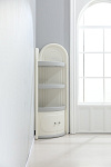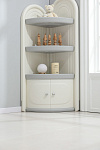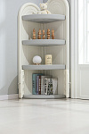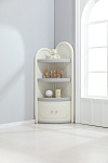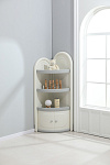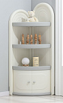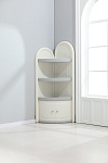 Угловой стеллаж для хранения состоит из трех открытых полок и одной закрытой, открытые имеют глубину 39 см и высоту 27 см, что позволяет разместить на них книги, игрушки и другие предметы. Высота закрытой полки 35 см. Высота шкафчика составляет 138 см, что позволяет разместить его в углу комнаты, экономя пространство.