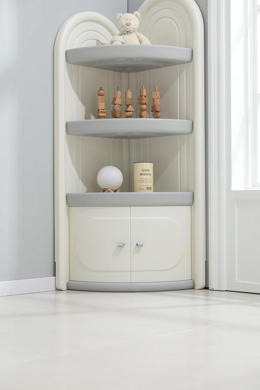 Одним из преимуществ пластмассового стеллажа является его универсальность. Он может использоваться не только в детской комнате, но и в других помещениях, таких как гостиная, ванная комната или офисное помещение. Шкаф стеллаж с дверцами Corner легко собирается и не требует крепления к стене, что делает его мобильным и удобным в использовании.