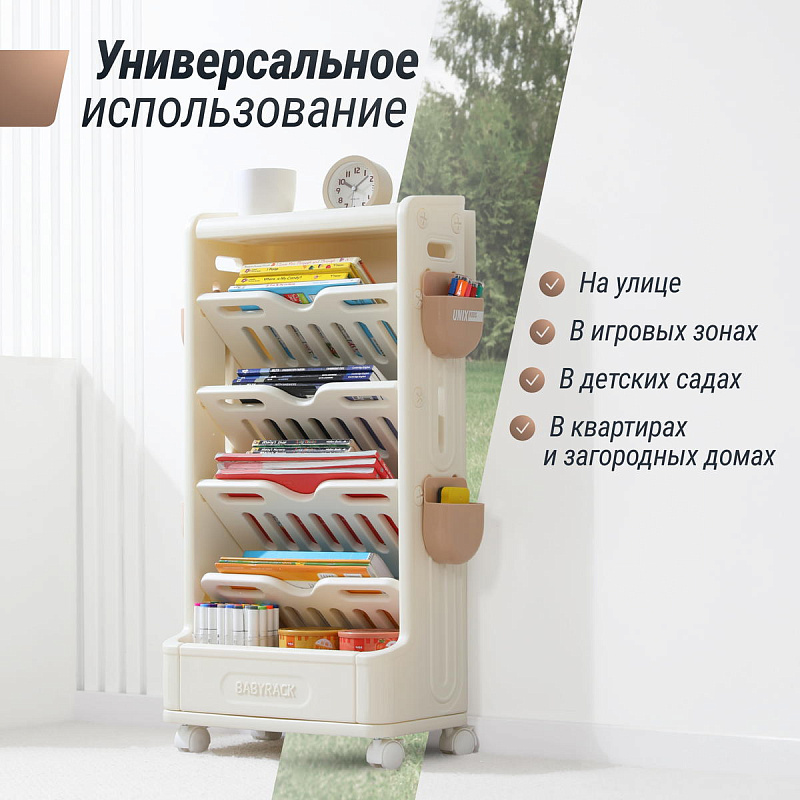 Напольный стеллаж позволяет удобно рассортировать и разместить книги, журналы и тетради. Органайзер можно использовать для хранения игрушек или предметов для хобби малыша. Открытый стеллаж поможет создать чистоту и порядок в детской комнате, позволяя хранить игрушки в определенном месте.