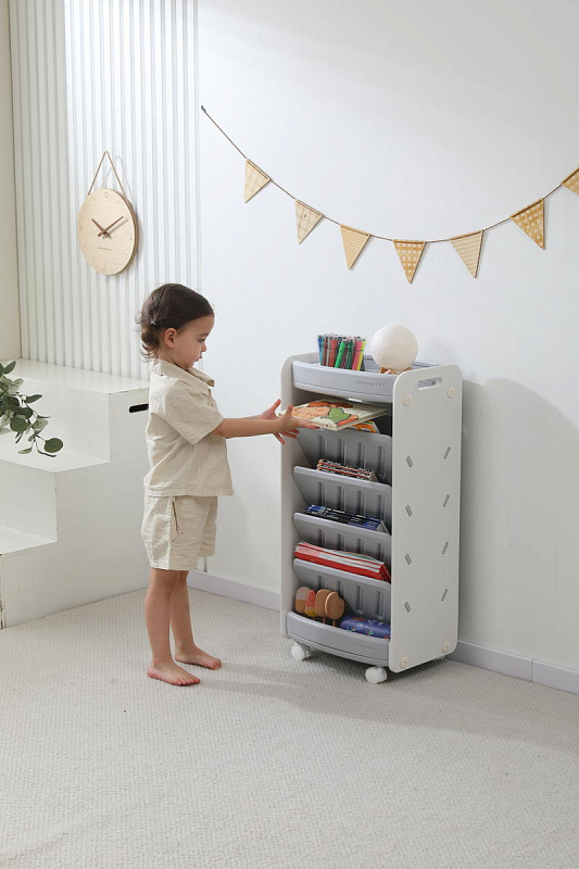 Напольный стеллаж позволяет удобно рассортировать и разместить книги, журналы и тетради. Органайзер можно использовать для хранения игрушек или предметов для хобби малыша. Открытый стеллаж поможет создать чистоту и порядок в детской комнате, позволяя хранить игрушки в определенном месте.