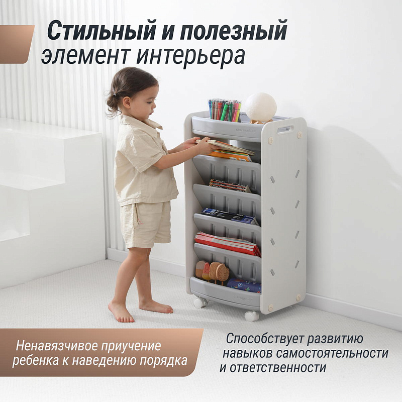Высота органайзера позволяет малышу самостоятельно расставлять свое богатство и будет побуждать детей исследовать мир книг. Размещая любимые истории на видном месте, вы помогаете формировать у ребенка привычку к чтению с раннего возраста. Стеллаж помогает детям учиться организовывать свое пространство, находить и убирать свои вещи. Это способствует развитию ответственности и самостоятельности.