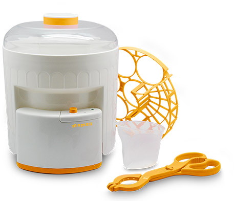 - Maman BY-03 имеет простую конструкцию, состоит из: основы, бачка, крышки, держателя, мерного стакана, а для удобства родителей еще имеются и щипцы, которыми просто можно вынимать стерильные бутылочки.