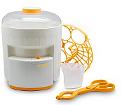 Съемный держатель позволяет размещать в устройстве, одновременно с бутылочками, соски, пустышки, а также мелкие детали молокоотсоса.