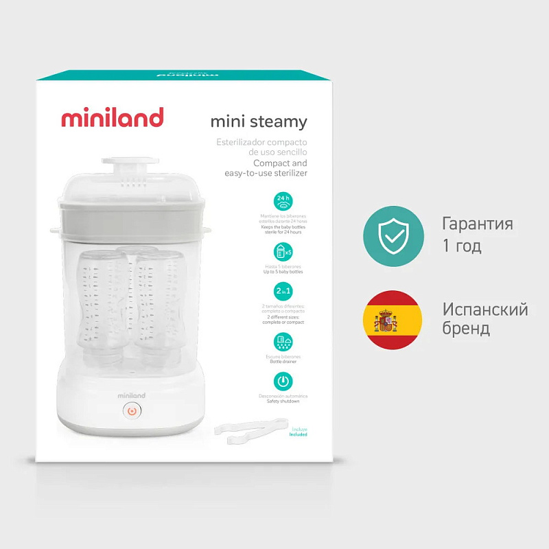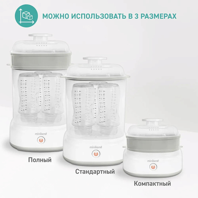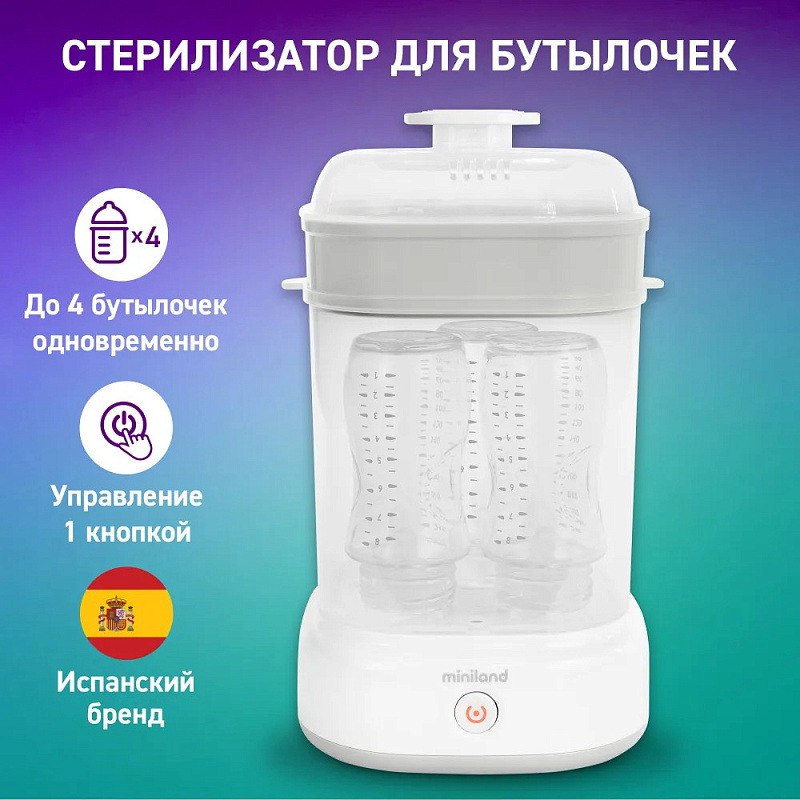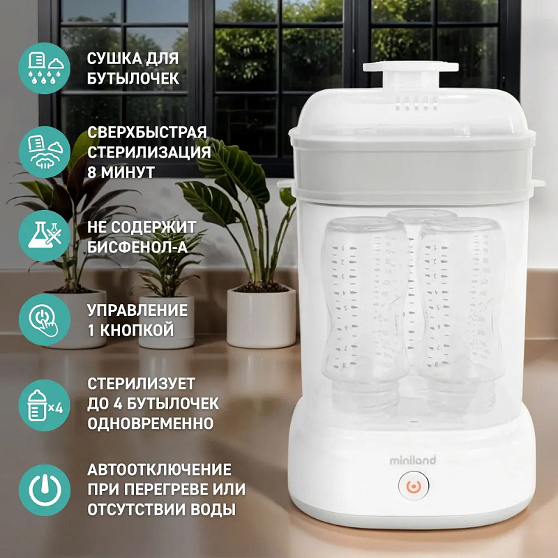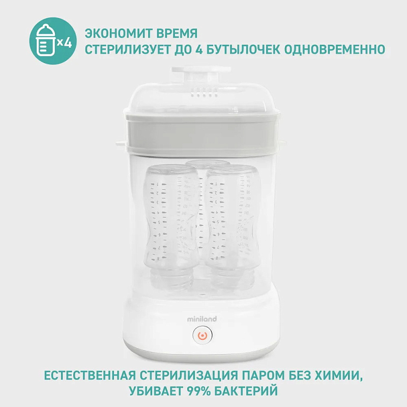 • Стерилизатор Miniland Steamy справляется со всеми видами бутылочек.
