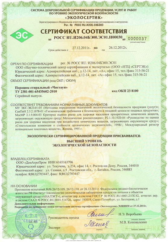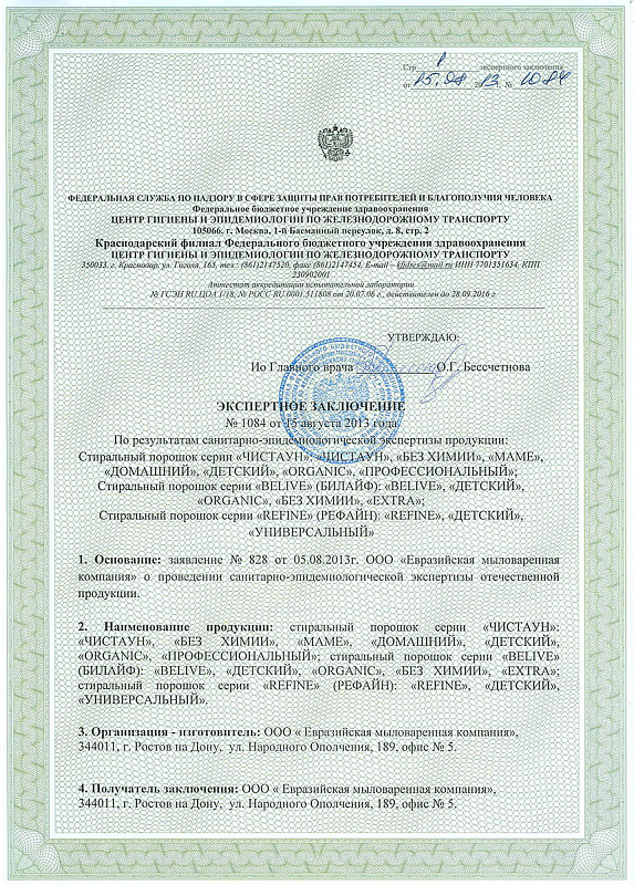 высокий процент отстирывания естественных загрязнений белого и цветного белья